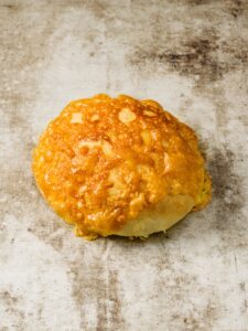 En mjuk och luftig fralla med smält ost ovanpå, populärt frukostval för alla åldrar.