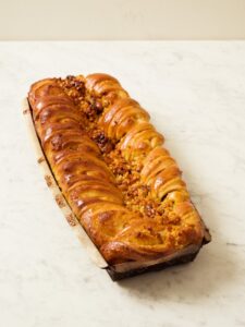 En vetelängd som är fylld med en krämig smörfyllning med smak av kardemumma. Fylld med en knäckig kola och krispiga nötter.