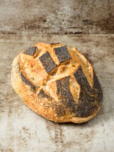 Vår klassiska levain rullad i vallmo, perfekt att rosta. Finns som både bröd och frallor.